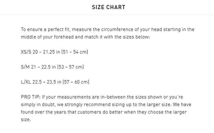 To ensure a perfect fit, measure the circumference of your head starting in the middle of your forehead and match it with the sizes below: